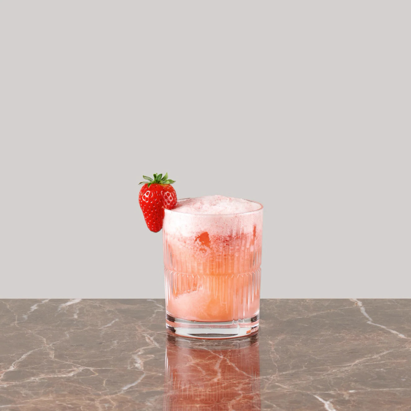 • Shake well, strain into a medium glass over 2 small lumps of ice.